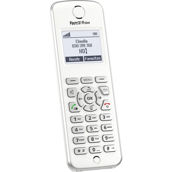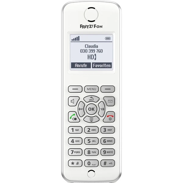 | Weitere Informationen | Ab Werk sicher durch verschlüsselte Sprachübertragung, komfortables Abhören und Konfigurieren des FRITZ!Box-Anrufbeantworters über FRITZ!Fon M2, signalisieren von neu eingegangenen Anrufen, mehrere Anrufbeantworter mit grafischen Menüs, Fernabfrage und E-Mail-Weiterleitung, Anzeige des Namens bei bekannter Rufnummer, interne Gespräche, Anrufweiterschaltung, Rufnummernsperre, Anklopfen, Rufumleitung, Halten, Makeln, Dreierkonferenz, Standard DECT-GAP und CAT-iq, Internettelefonie SIP-konform nach RFC3261, Tastatur mit Funktions-, Steuer- und Zifferntasten, Stromversorgung: Lithium-Ionen-Akku-Pack (3,7 Volt/750 mAh) mit Tiefentladeschutz | ||