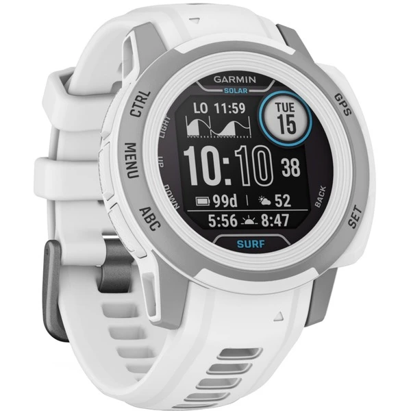 Die Garmin Instinct 2s ist eine toughe GPS-Smartwatch und stürzt sich stets mit in jedes Erlebnis. Man kann seine Fitness im Blick behalten und bleibt dabei immer smart in Verbindung. Die robuste Smartwatch ist wasserdicht bis 100 Meter, sowie hitze- und stoßfest. Das Gehäuse besteht aus einem faserverstärktem Polymer. Das Display wurde chemisch verstärkt und ist aus kratzfestem Gorilla Glass gefertigt. Sie nutzt gleich mehrere globale Navigationssatellitensysteme (GPS, GLONASS und Galileo), um in schwierigeren Umgebungen eine bessere Positionsfindung als bei ausschließlicher Verwendung von GPS zu ermöglichen. Zusätzlich hilft sie dank ABC-Sensoren – darunter ein Höhenmesser für Höhendaten, ein Barometer zum Überwachen des Wetters und ein elektronischer 3-Achsen-Kompass – bei der Navigation. Und selbst bei schlechten Sichtverhältnissen findet man dank Trackback Routing immer auf derselben Route zurück zum Startpunkt. Tägliche Trainingsvorschläge liefern Trainingsanweisungen, bei denen sowohl die Körperwerte selbst als auch das Fitnesslevel berücksichtigt werden. Die Vorschläge basieren auf aktuellen Daten zu Trainingsbelastung und Trainingszustand. Beim Training, oder auch generell über den Tag und die Nacht hinaus, erhält man dank der Instinct 2s Daten zur berechneten Herzfrequenz sowie Alarme, wenn die Herzfrequenz während einer Ruhephase zu hoch oder zu niedrig ist. Der Akku hält dabei bis zu 28 Tage im Smartwatch-Modus, oder auch länger in einem der sparsameren Modi. Und mit der Solarladung erhält man im Smartwatch-Modus sogar eine unbegrenzte Akkulaufzeit. In der Surf Edition sind etliche, spezialisierte Features enthalten wie Bedingungen wie der Stand der Gezeiten, Wellenhöhe, Wind- und Brandungsbewertungen für die fünf nächstgelegenen Surfspots, wenn man das Gerät mit der Garmin Connect-App auf einem kompatiblen Smartphone koppelt.Art.-Nr.: 1830359