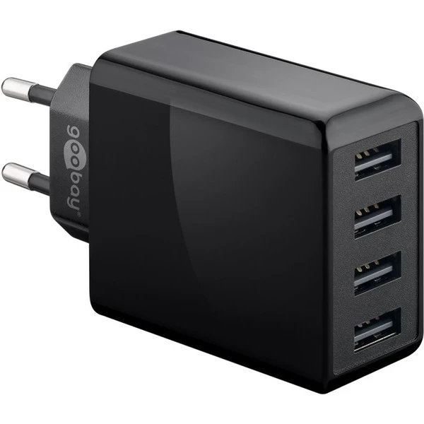 Das goobay 4-fach USB-Ladegerät (30W) schwarz lädt bis zu 4 Geräte gleichzeitig über USB-A. Die intelligente Ladeerkennung (ID Chip Technology) steuert den optimalen Ladestrom bis zu 3A (15W). Das Ladegerät ist universell geeignet für Geräte, wie Smartphones oder Tablets die über USB geladen werden oder als Netzteil zur Spannungsversorgung für Geräte über USB. Die Integrierte Elektronik schützt bei Überlast, Überhitzung und Kurzschluss und bietet somit die optimale SicherheitArt.-Nr.: 1785255