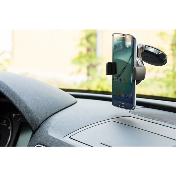 Die KfZ-Halterung von goobay kann für Smartphones mit einer Breite zwischen 52 – 90 mm genutzt werden und lässt sich durch das Kugelgelenk um volle 360° bewegen – so hat man immer eine optimale Sicht auf das eingesetzte Gerät. Der Saugfuß inklusive Drehmechanik stellen einen festen Halt sicher. Um das Smartphone zu schützen, ist die Rückseite der Halterung weich gepolstert, Anschlüsse und Bedienelemente sind dabei vollständig erreichbar.Art.-Nr.: 1521836