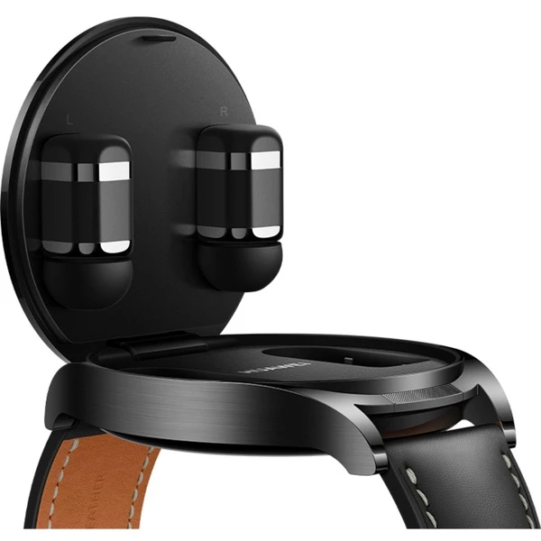 | Weitere Informationen | Gewicht: ca. 66,5 Gramm (ohne Armband), Gesamtgewicht: 77,5 Gramm | Ohraufsätze in L, M, S (M ist vorinstalliert) | Uhrengehäuse aus Edelstahl | Breite des Armbands: 22 mm | 6-Achsen-Inertialsensoren (Beschleunigungssensor und Gyroskopsensor), optischer Herzfrequenzsensor 5.0, optischer Umgebungssensor, Hall-Effekt-Sensor, kapazitiver Sensor und Knochenleitungskomponente (VACC) | Bedienung: Taste (unterstützt das Drücken, aber keine rotationsbasierten Interaktionen, wie das Vergrößern oder Verkleinern und das Blättern in einer Liste), Taste zum Öffnen des Covers | die Ohrhörer sind nach IP54 zertifiziert | Laufzeit der Ohrhörer: 4,0 Stunden Musikwiedergabe oder 2,5 Stunden Telefonieren bei deaktivierter Rauschunterdrückung, 3,0 Stunden Musikwiedergabe oder 2,0 Stunden Telefonieren bei aktivierter Rauschunterdrückung | Mikrofon in Kopfhörer integriert | ||