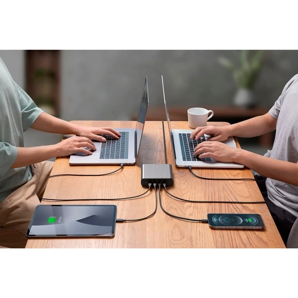 Das HyperJuice 245W GaN Desktop-Ladegerät ist die eine Lösung, mit der eine robuste Stromversorgungslösung für jeden Heimarbeiter oder jedes Unternehmen angeboten wird, wenn der Platz für zusätzliche Steckdosen knapp ist. Es ist ein kleines 245-W-GaN-Ladegerät, das mit vier 100-W-USB-C-Power-Delivery-Ports ausgestattet ist, die von der branchenführenden GaN-Technologie angetrieben werden. Damit kann man vier mittelgroße 60-W-Laptops gleichzeitig aufladen, wie beispielsweise das 33,02 cm (13″) MacBook Pro oder Air. Oder wenn man mehrere Geräte hat, kann man zwei 40,64 cm (16″) MacBook Pro Laptops, ein iPad Pro und ein iPhone 13 gleichzeitig aufladen.Art.-Nr.: 1871992