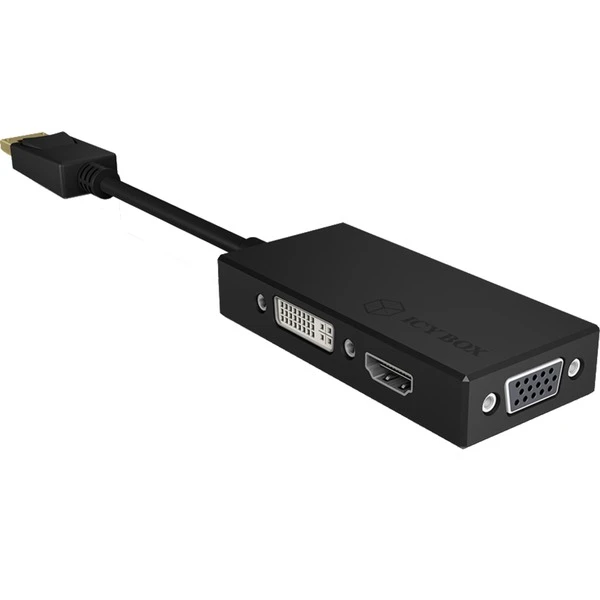 Der IB-AC1031 DisplayPort zu HDMI / DVI-D / VGA Grafikadapter verbindet DisplayPort Geräte (Laptop, Desktop-PC, etc.) mit HDMI / DVI-D / VGA Geräten (Fernseher, Monitor, Beamer, etc.). Somit ist das angeschlossene Displayport Gerät perfekt gewappnet für alle Anzeigegeräte.Art.-Nr.: 1376599