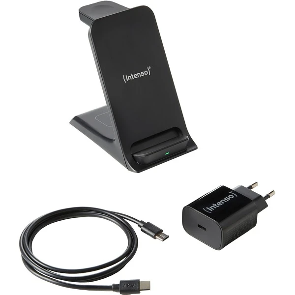 Die Ladestation Wireless Charger BS13 von Intenso ist eine induktive Ladestation mit Standfuß. Der platzsparende 3-in-1 Wireless Charger lädt ein Smartphone (mit bis zu 15 Watt), eine Applewatch (mit bis zu 2 Watt) und die Earbuds (AirPods und andere Modelle, die kabelloses Laden unterstützen) mit bis zu 5 Watt parallel mit Schnellladetechnologie auf und sorgt gleichzeitig für Ordnung auf dem Nachttisch oder Schreibtisch. Als permanente Ladestation, etwa am Arbeitsplatz oder in der Küche, ist der Wireless Charging Stand BS13 ideal, um die Lieblingsgeräte nebenbei aufzuladen. Der Wireless Charger BS13 funktioniert mit allen Qi-fähigen Smartphones, egal ob Android oder Apple. Das Handy kann dabei entweder vertikal oder horizontal an den Wireless Charging Stand gelehnt werden, sodass die Bildschirmansicht je nach Bedarf wechselt. So kann man während des induktiven Ladevorgangs z.B. Social Media Feeds durchscrollen oder Videos und Filme anschauen. Der Wireless Charger BS13 ist außerdem mit einem Überhitzungs- und Überspannungsschutz ausgestattet, so dass man die Geräte sorgenfrei aufladen kann. Das moderne Schnelladesystem bietet ein extra schnelles Aufladen mit bis zu 15 Watt. Damit ist das Smartphone schon innerhalb kürzester Zeit wieder zu 100% aufgeladen. Der Ladevorgang wird auch durch Kunststoffhüllen bis 5mm Dicke nicht beeinträchtigt.Art.-Nr.: 100009487