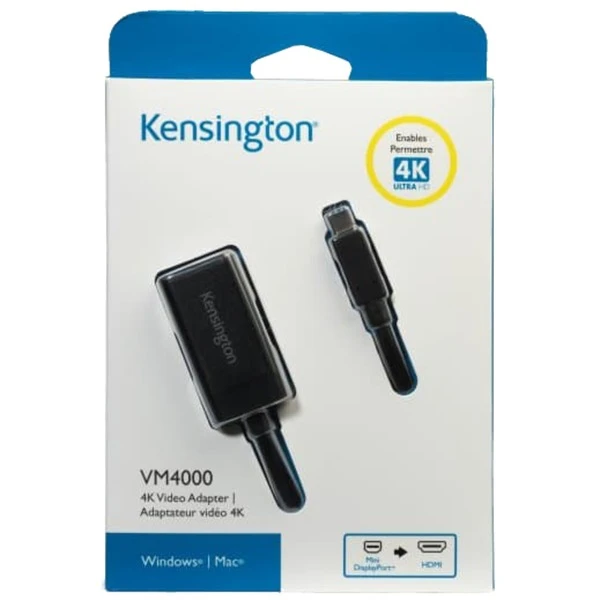 Der VM4000 4K Videoadapter Mini DisplayPort auf HDMI von Kensington ermöglicht es Inhalte des Laptopbildschirms in 4K Ultra-HD auf einem 4K-Monitor, TV-Gerät oder Projektor anzuzeigen, auch wenn das Notebook nicht über eine 4K-Grafikkarte verfügt. Der VM4000 4K-Videoadapter wird einfach in den Mini DisplayPort am Laptop eingesteckt und mit dem HMDI-Anschluss am Monitor, Projektor oder TV-Gerät verbunden. Für eine gesteigerte Produktivität durch die scharfe und klare 4K-Anzeige, mit der sich mehr Inhalt auf einem Einzelbildschirm anzeigen lässt, braucht man lediglich diesen Adapter.Art.-Nr.: 1273174