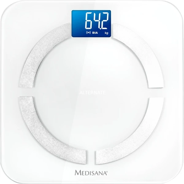 Die Körperanalysewaage Medisana BS430 misst nicht nur das Gewicht, sie gibt auch den Anteil von Körperfett, Körperwasser sowie Muskelmasse in Prozent der Gesamtmasse aus und hat eine integrierte Kalorienbedarfsanalyse (BMR). So lässt sich feststellen, ob die zugenommenen Kilos vom Joggen (Muskelmasse) oder vom Schlemmen (Körperfett) kommen. Die Medisana BS430 hat einen Speicher für bis zu 8 Personen. Über die separate vita-Dock-App lassen sich zusätzliche Funktionen über Bluetooth auf einem Smartphone oder Tablet einstellen.Art.-Nr.: 1136597