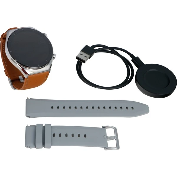 | Zubehör | vorhanden | USB-Kabel, kabellose Ladestation, braunes Lederband, graues Fluorkautschukband, Gebrauchsanleitung | |